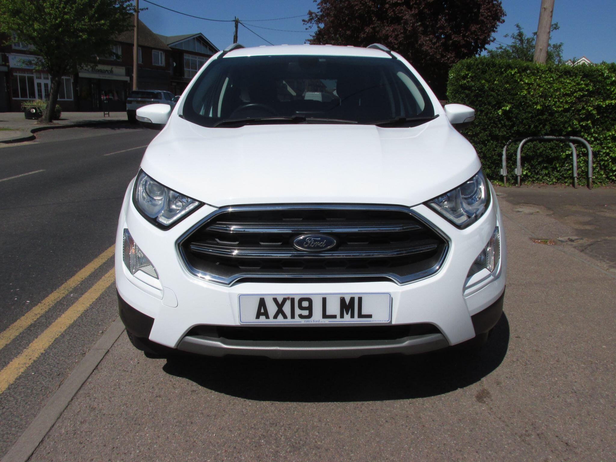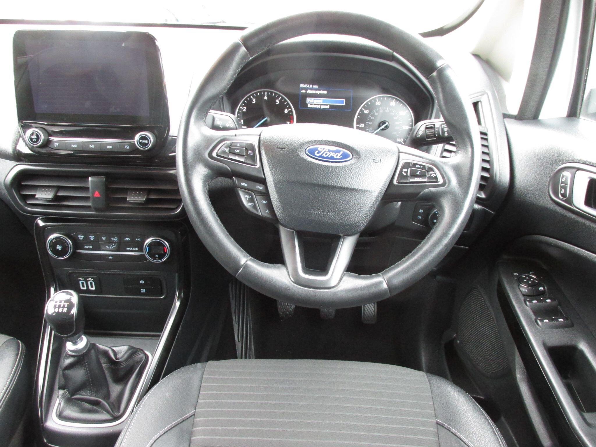 GREAT LOOKING ECOSPORT....NICE LOW MILEAGE WITH 5 STAMPS SERVICE HISTORY...JUST BEEN SERVICED...LADY OWNED....2 KEYS....APPLE PLAY....REVERSING CAMERA....PARKING SENSORS....SA/NAV....This 2019 Ford EcoSport T Titanium boasts an MOT valid until April 2027, offering you peace of mind for years to come. With a 1.0L petrol engine and Euro 6 emissions, this model has a recorded last service at 55,427 miles on 20th April 2026. It comes equipped with a rear view camera and rear parking sensors for easier manoeuvring, alongside electronic automatic temperature control for a comfortable cabin. The Ford Navigation System with Ford SYNC 3, compatible with Apple CarPlay and Android Auto, keeps you connected and on the right path, while automatic headlights ensure optimal visibility.