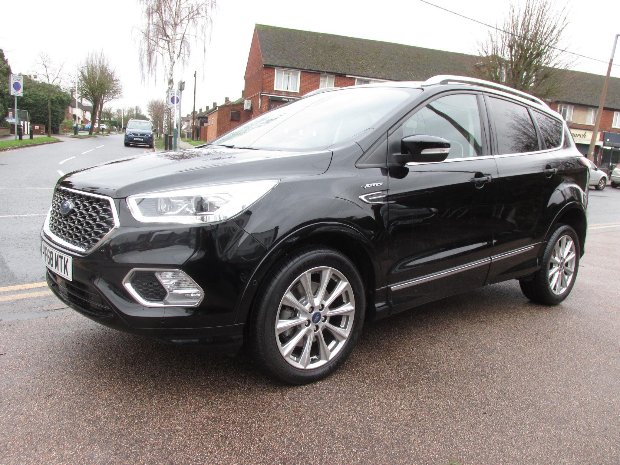 STUNNING CAR.....FSH...7 STAMPS....LAST SERVICED @ 41,639....SPECIAL VIGNALE LEATHER INTERIOR.....REAR CAMERA....This 2018 Ford Kuga T Vignale boasts a full service history, with its last service completed on 7th August 2026 at 41,639 miles, and comes with a clear vehicle history check. This Euro 6 compliant, four wheel drive model is powered by a 1.5 litre petrol engine and features the premium Vignale trim. Inside, you'll find a premium Ford DAB Navigation System with Ford SYNC3, offering Android Auto, Apple CarPlay, Bluetooth, a branded sound system, and rear camera parking assistance. The enhanced active park assist includes front and rear parking sensors, complemented by a rear view camera. Comfort is assured with DEATC dual zone electronic automatic temperature control and heated front seats.